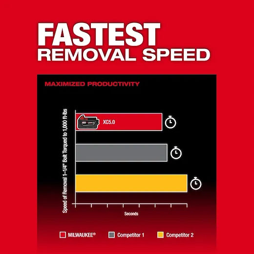 - POWERSTATE™ Brushless Motor delivers up to 1,100 ft-lbs of Fastening Torque & 1,500 ft-lbs of Nut-Busting Torque w/ M18™ REDLITHIUM™ XC5.0 Battery