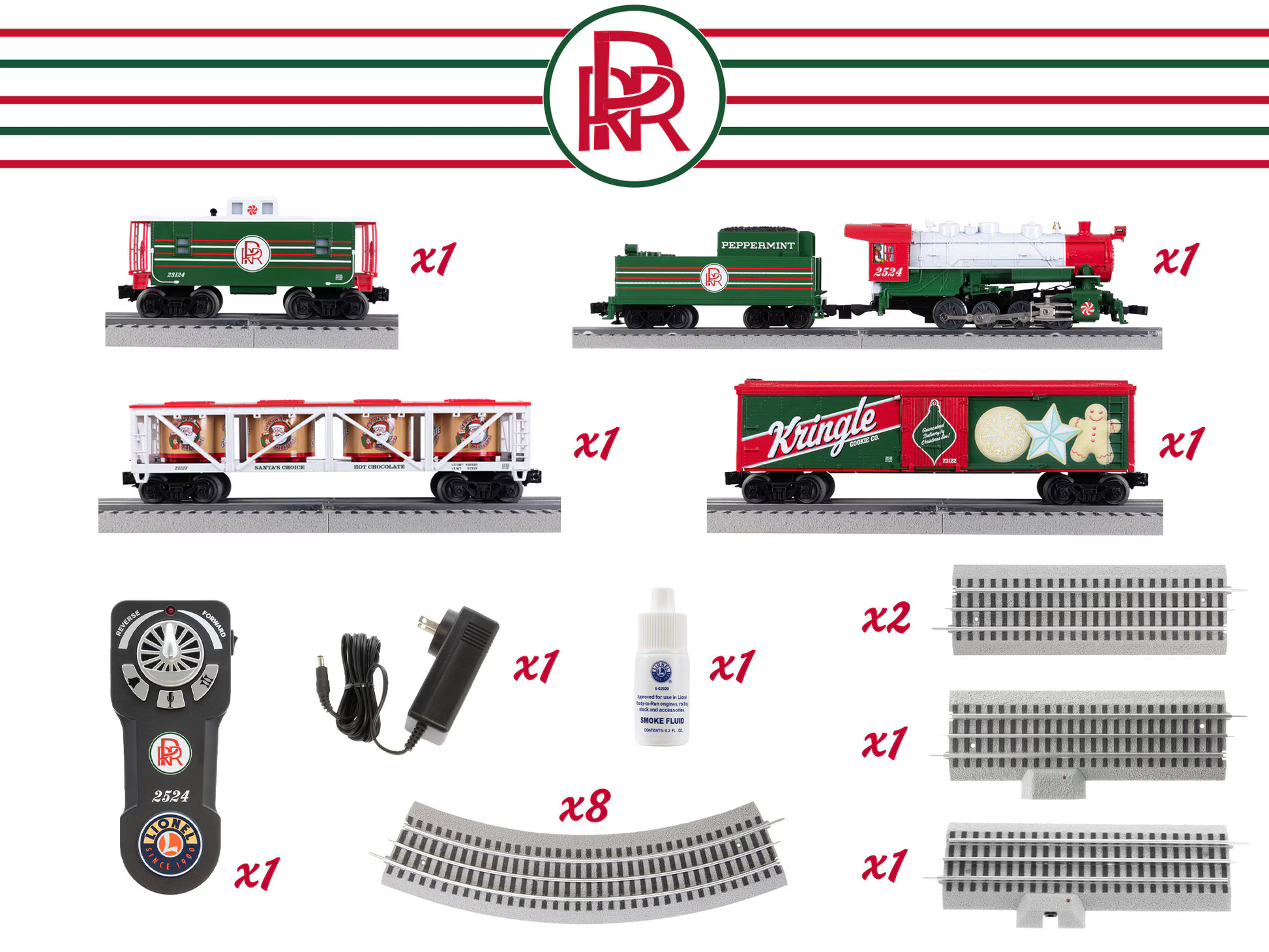 All aboard the Peppermint Railroad! Those with a sweet tooth will love this holiday treat inspired Christmas Set., featuring a classic 0-8-0 locomotive and fun freight cars, this set is a truly classic scheme to build upon with Lionel freight cars for years to come.