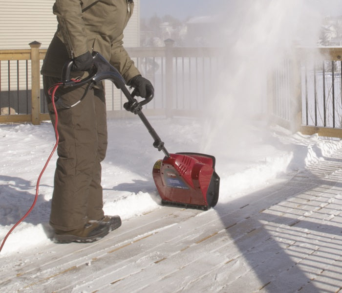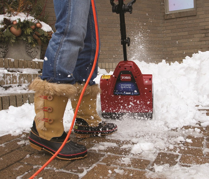 Make small snow clearing jobs a snap with the Toro Electric Power Shovel®. This handy tool delivers a 12 in. snow clearing width, making it an ideal choice for sidewalks, steps, decks and small driveways. And don't let its smaller size fool you, as it moves up to 300 lbs. of snow per minute and blows it up to 20 feet away, helping you quickly and easily clear an area. The power shovel's telescoping handle alters the handle height to fit each user in the home.